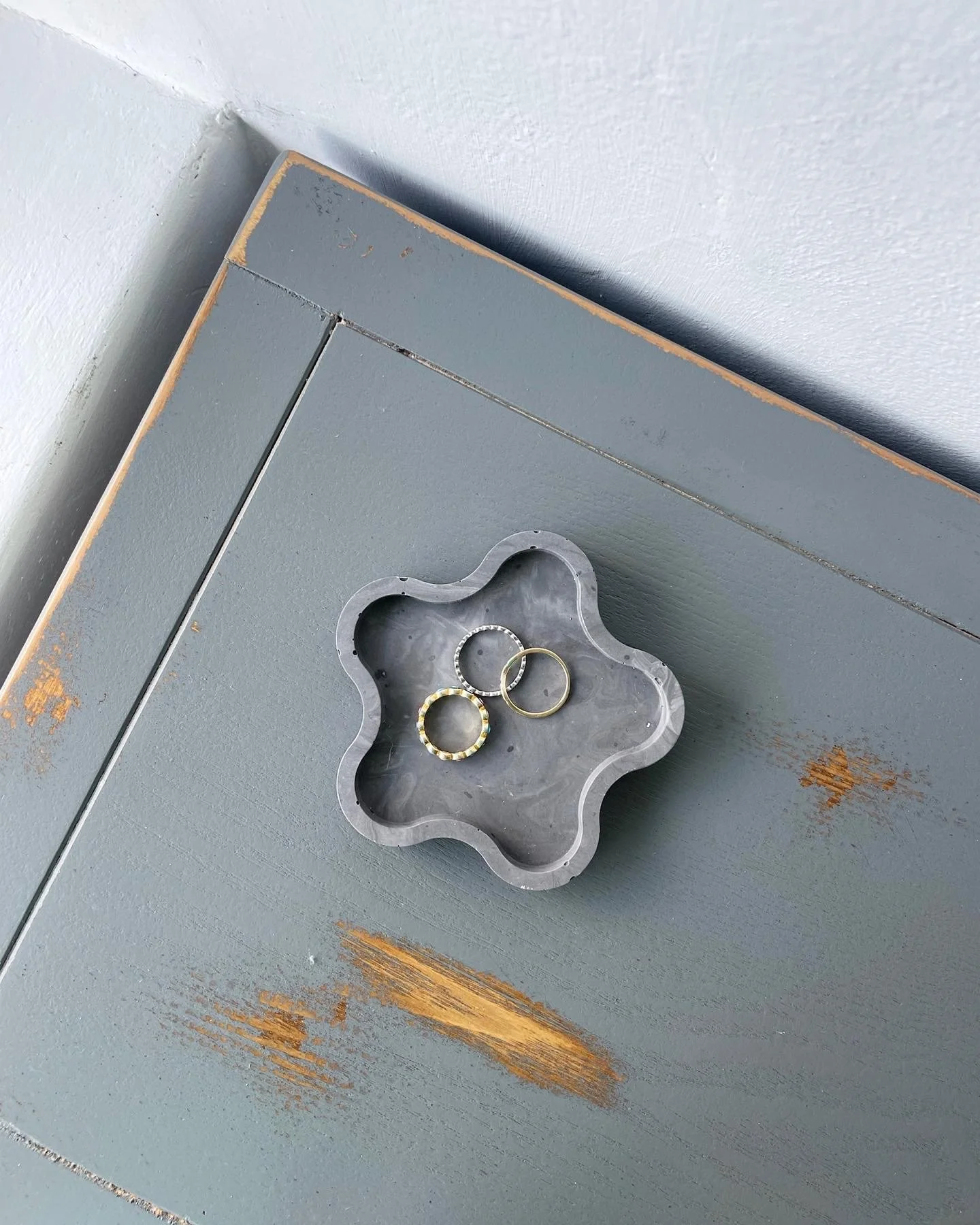 Das verwendete Material nennt sich Jesmonite. Jesmonite ist ein umweltfreundliches Verbundmaterial auf Wasserbasis, das aus einer Kombination von natürlichem Mineralpulver und Acrylharz besteht. Es gilt als nachhaltige Alternative zu Beton, Gips oder Kunststoffen und wird besonders im Interior-Design, für Schmuck, Dekorationsobjekte und kleine Möbelstücke geschätzt. Jesmonite ist frei von Lösungsmitteln, VOC-arm (flüchtige organische Verbindungen) und wird ohne schädliche Chemikalien verarbeitet. Da es ressourcenschonend hergestellt wird und eine lange Lebensdauer hat, eignet es sich unter anderem gut für Dekorationen. Das Material erweist sich als umweltfreundlich & ungiftig– sicher für Mensch und Natur. Es ist sehr angenehm in seiner Beschaffenheit, leicht, aber robust – ideal für filigrane wie auch stabile Objekte.